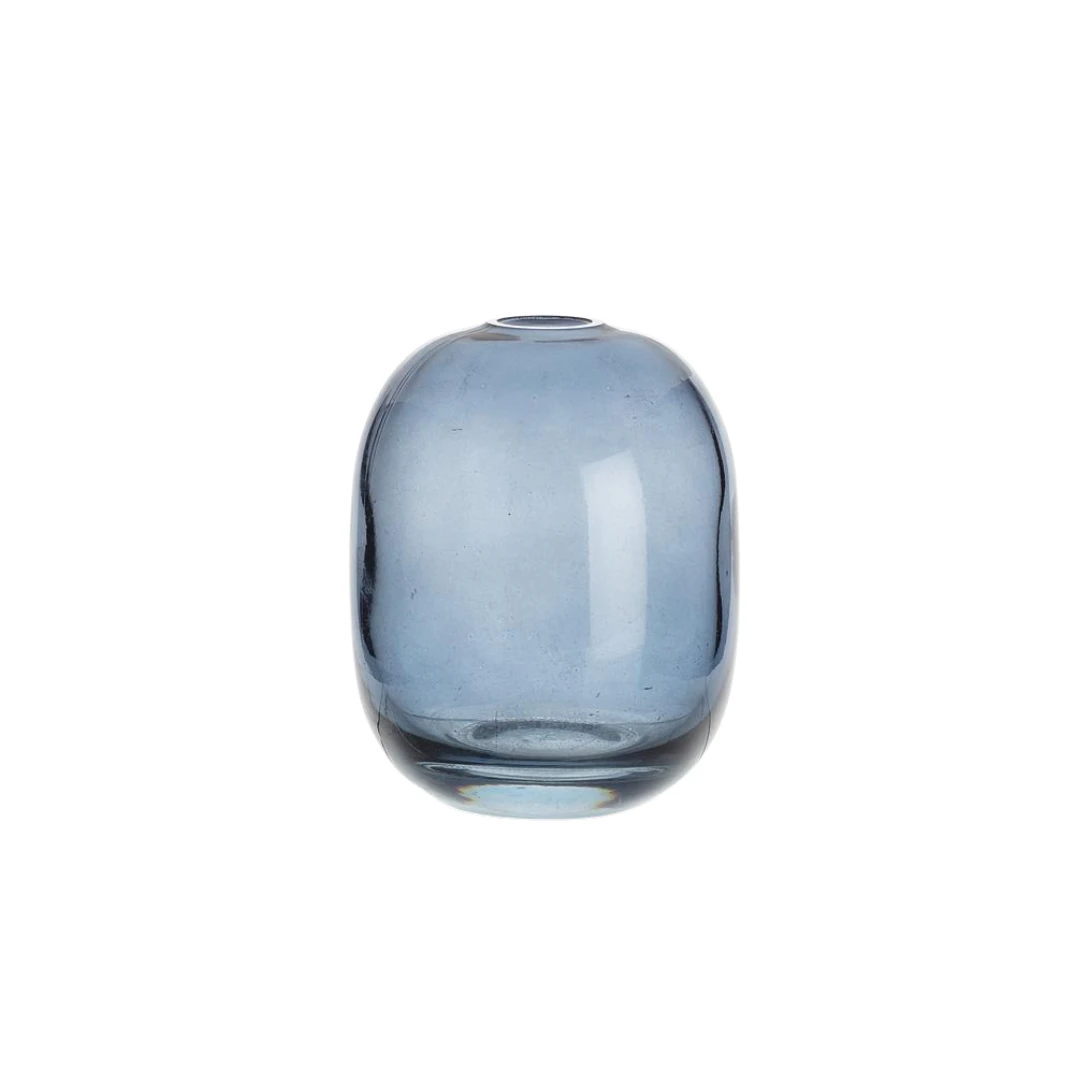 The dark and moody blue oval vase adds a pop of personality and style to your home decor. Made from high-quality glass, it features a sleek and slender design that beautifully showcases single blooms or small arrangements. Whether displayed individually or in a group, this artfully crafted colored glass bud vase brings beauty and sophistication to any space.