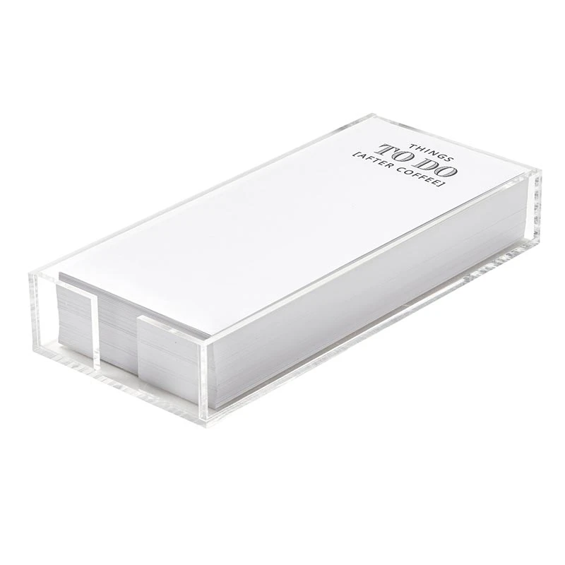 Add a modern and clean look to your workspace with these acrylic stationary sets! Paper inserts with fun and simple messages are sure to keep your workday lighthearted.
