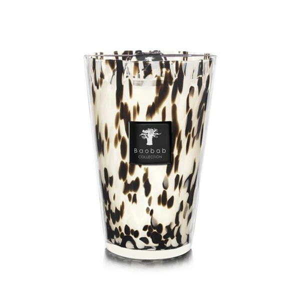In a transparent hand-blown glass with black details, the Black Pearls scented candle is as precious as the black pearls from which it draws its name.