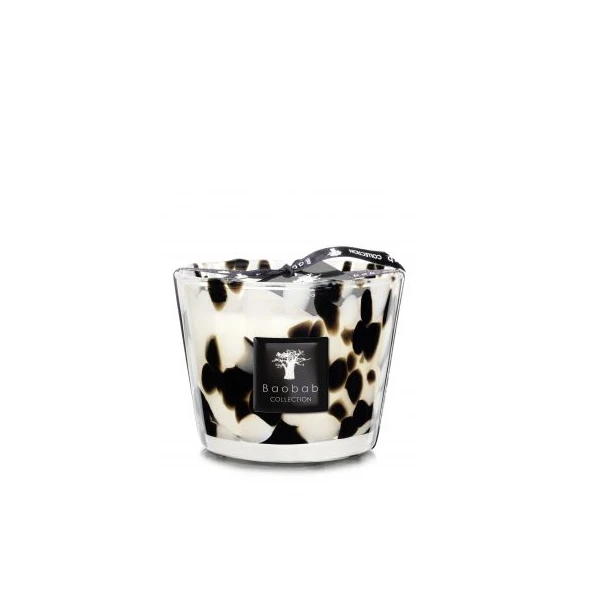 In a transparent hand-blown glass with black details, the Black Pearls scented candle is as precious as the black pearls from which it draws its name.
