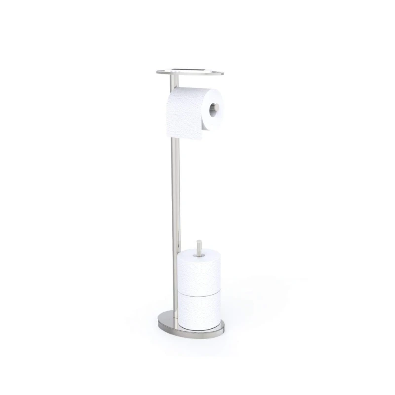 This caddy includes a tray for your electronic device or personal wipes and storage for two additional tissue rolls, all in one contemporary, streamlined caddy!