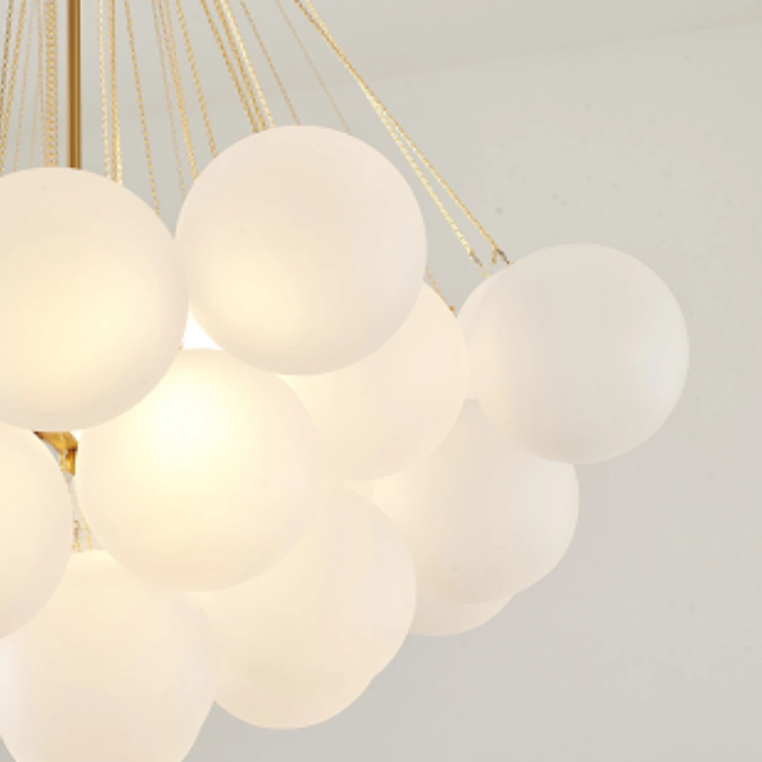 The cloud chandelier will be a fun, contemporary addition to your home. This chandelier features a gold plated frame with white frosted glass hanging shades.