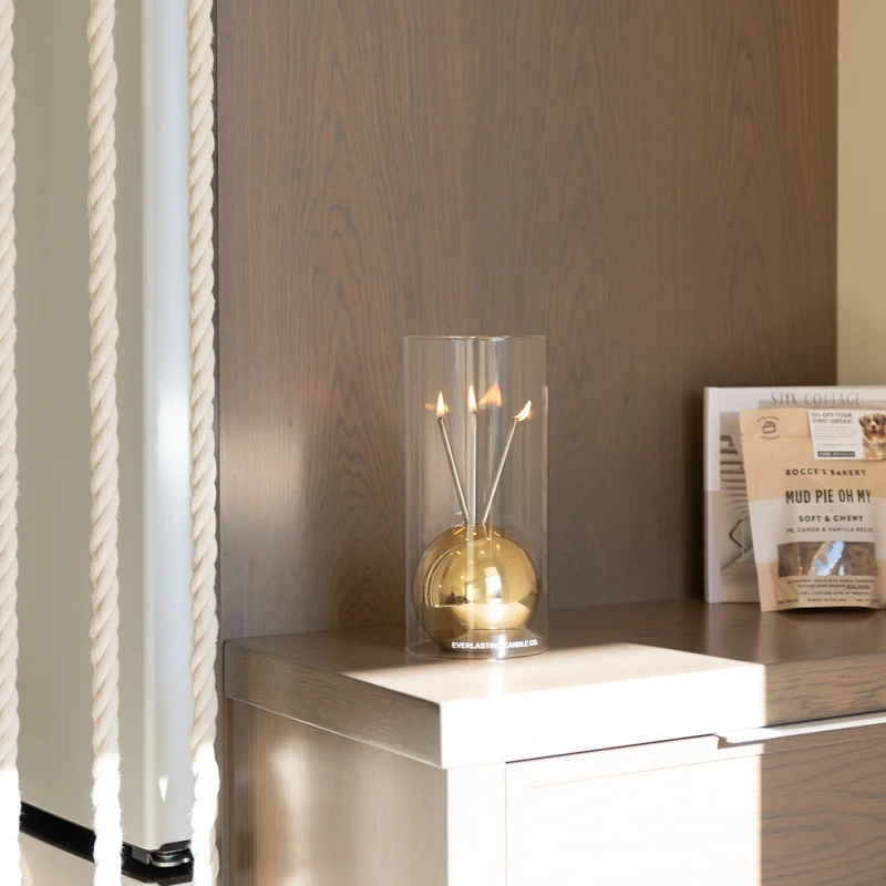 Thoughtfully designed from hand-blown glass, this hurricane candle holder complements all Everlasting Candle collections — Wylie, Neva, and Jervis. The protective glass shields the flame from drafts, ensuring a steady, radiant glow, while also preventing accidental contact during intimate dinners or relaxed evenings.
