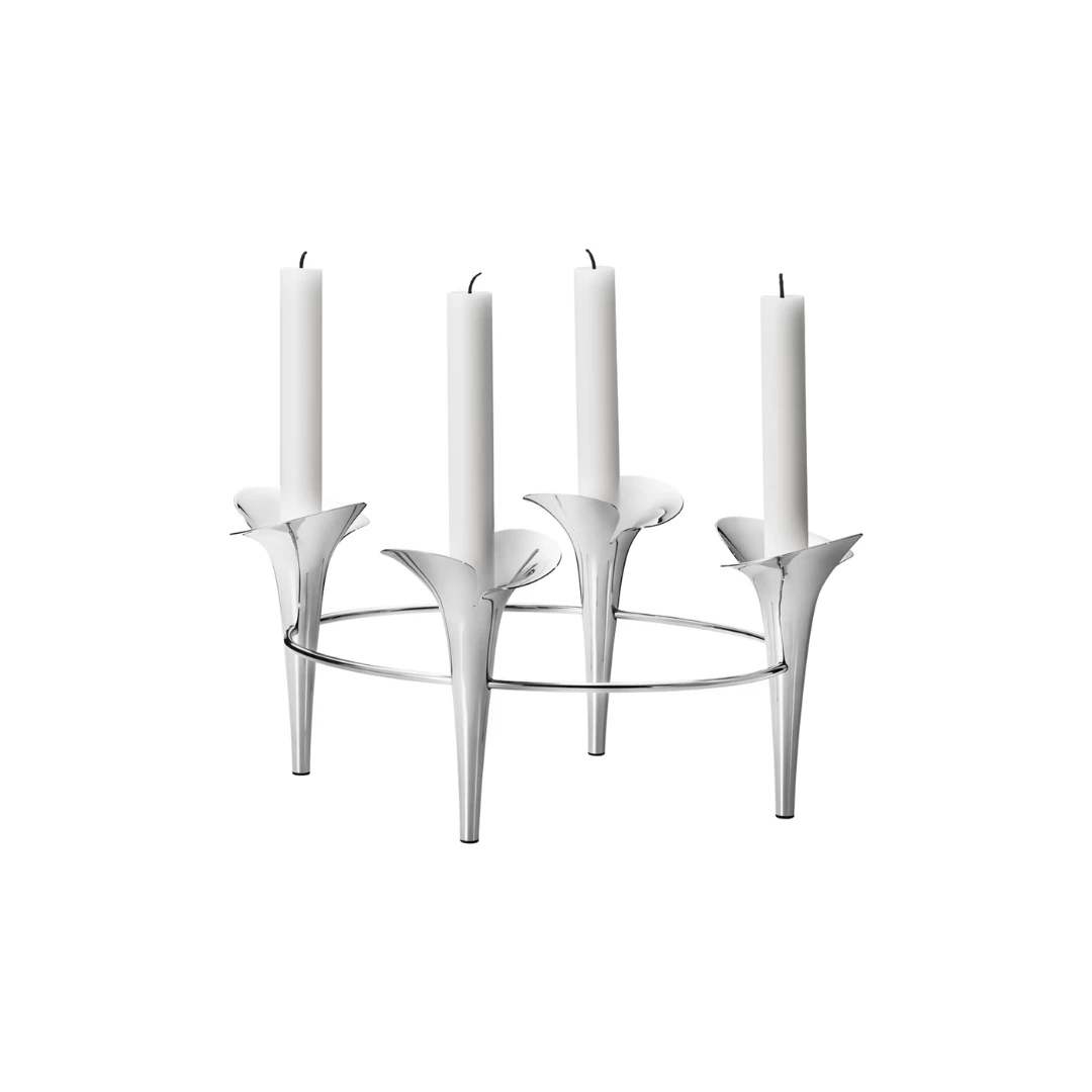 This taper candleholder in polished stainless steel can hold up to four candles and features the defining elements of the collection, which bring the beauty of nature into our homes.