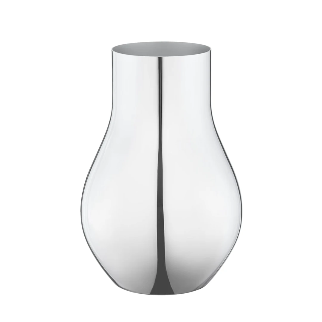 Sculptural and bold in its minimalism, this striking stainless steel vase is a beautiful expression of contemporary Scandinavian design. Reflecting back the flowers in its mirror polished surface adds an extra dimension when the vase is full but empty it can be styled with different sized vases from the same Cafu collection.