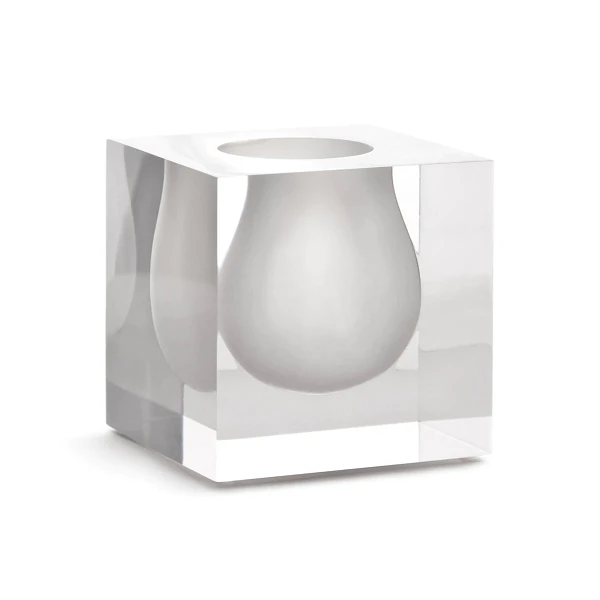 An organic form in a bold or moody hue suspended within a thick clear acrylic cube. This Bel Air vases are perfect for tight bouquets, and also fab as an intriguing objet sans blooms.