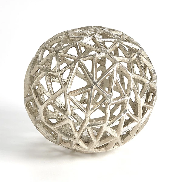 Inspired by the traditional architectural features during the Mughal Empire in Northern India, The Jali Ball is made of aluminum with an antique nickel finish.