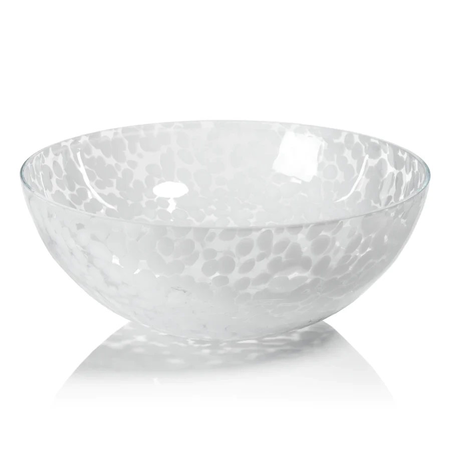Large White Confetti Glass Bowl