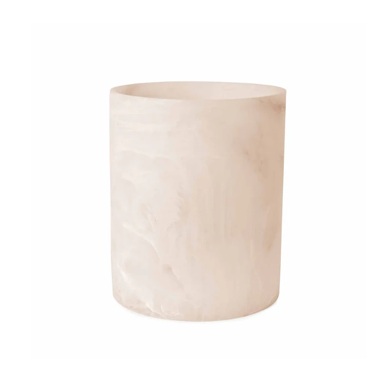 Crafted from sturdy resin with subtle and soothing pink-toned hues, this accessory set brings a touch of tranquility to any bathroom.