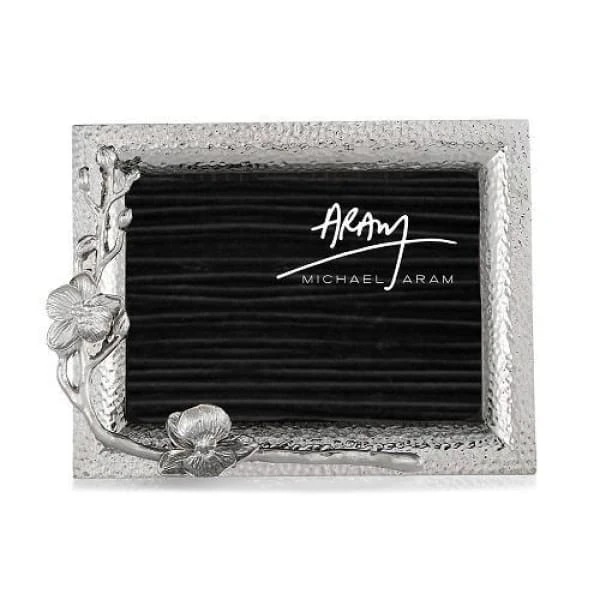 The Michael Aram White Orchid Collection illuminates the ethereal spirit of the orchid flower. Evocative of purity, delicacy, femininity and grace, the white metal version offers a strikingly different appeal than its black counterpart.