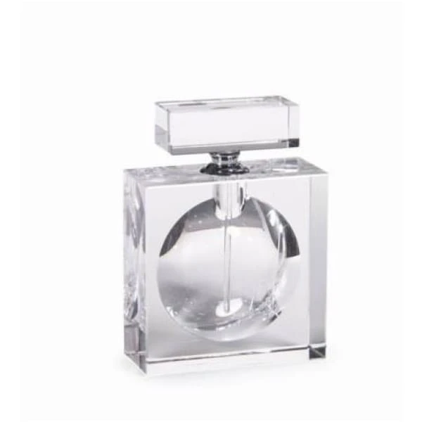 Enhance your bathroom vanity with this elegant glass perfume bottlel. It has a rectangular lid and the perfume is stored in the circular space at the bottle’s center. Perfect in a contemporary or modern decor.