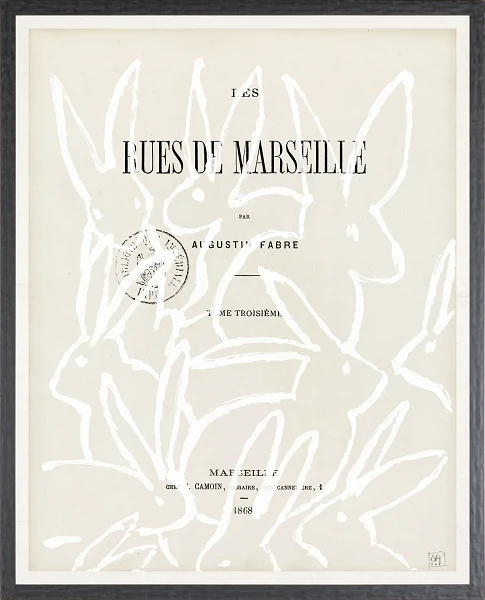 This collection is assorted of historical pages from French textbooks and title pages overlaid with contrasting colourful illustrations of rabbits.