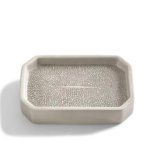 Crafted from fine porcelain and embossed to give the appearance of true shagreen texture, this exotic accessory set brings untamed refinement to the bath.